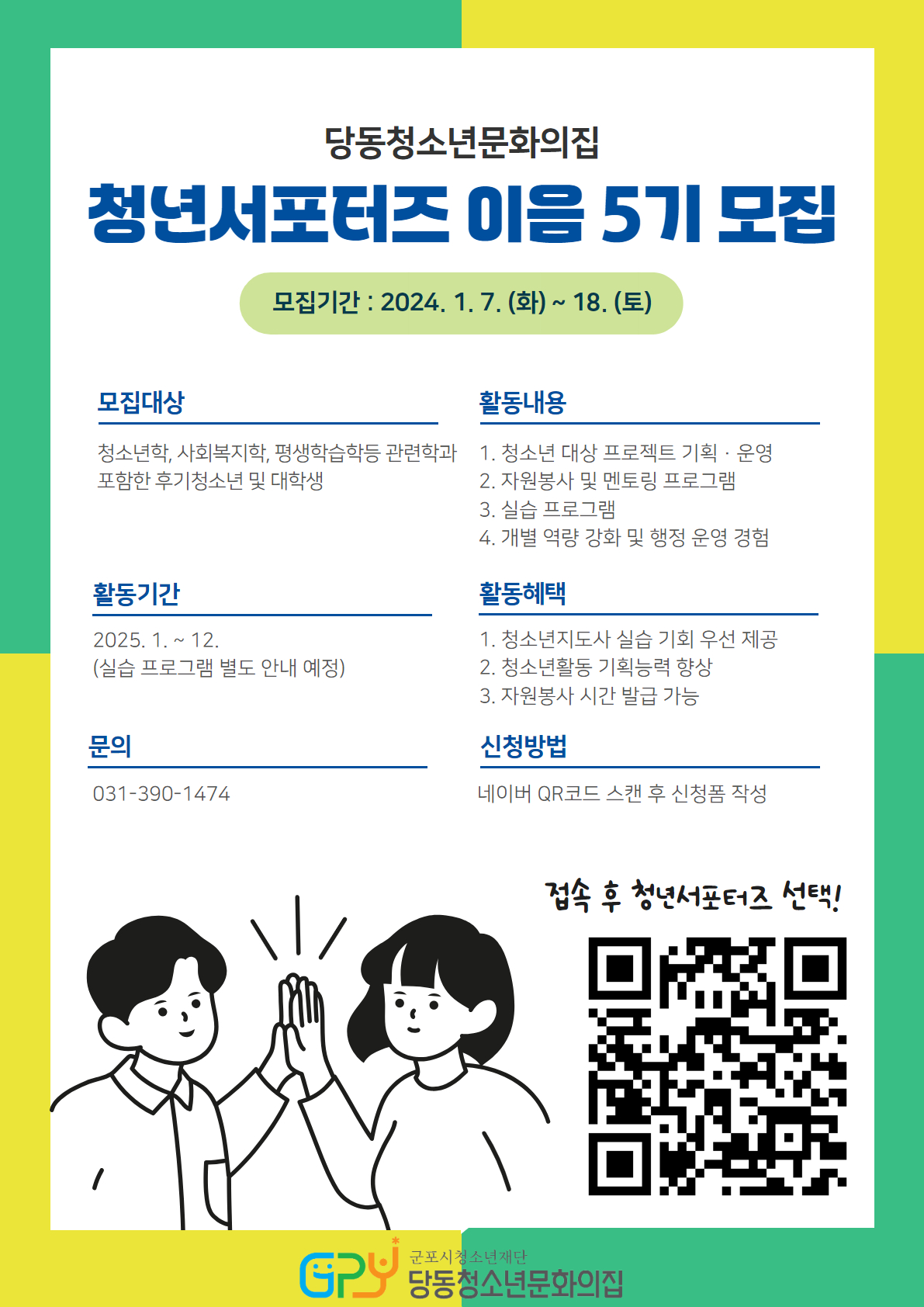 [당동청소년문화의집 청년서포터즈 이음 5기 모집]