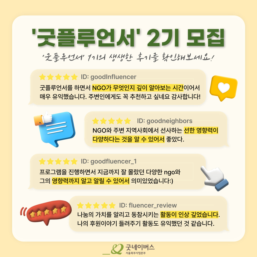 [굿네이버스] 일일 NGO 체험단 ‘굿플루언서’ 2기 모집 (~1/30)