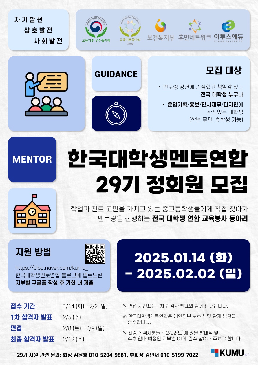 👩🏻🏫한국대학생멘토연합 29기 대모집🧑🏻🏫 (🚨모집기간 연장 ~2/2(일)까지🚨)