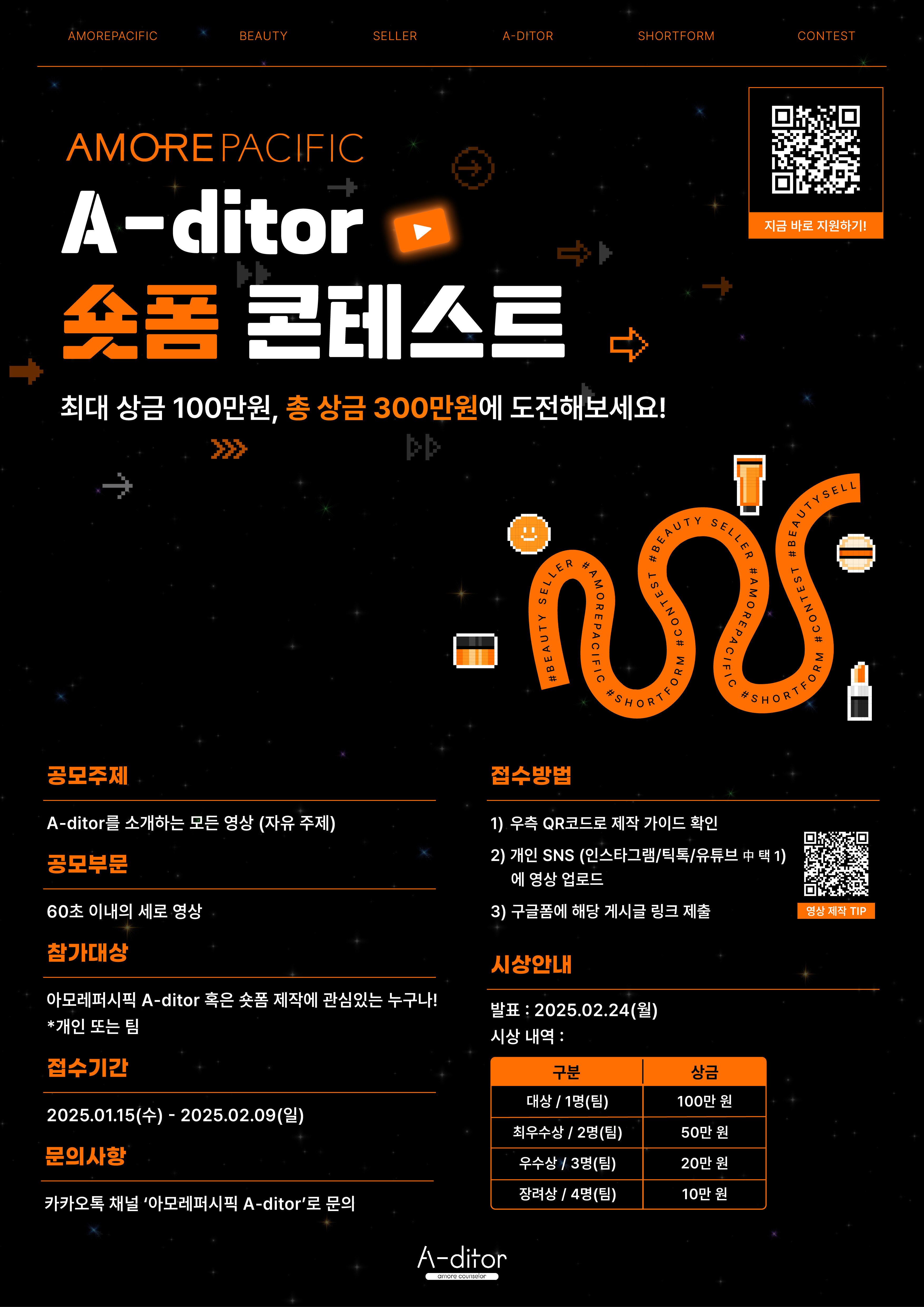 - 아모레퍼시픽 A-ditor 혹은 숏폼 제작에 관심있는 누구나!