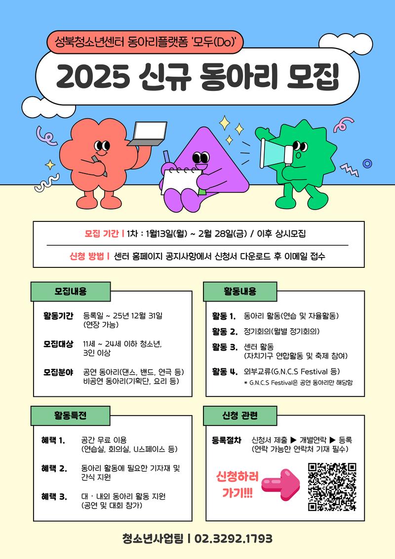 2025년 성북청소년센터 동아리 연합 '동아리플랫폼 모두(DO)' 모집