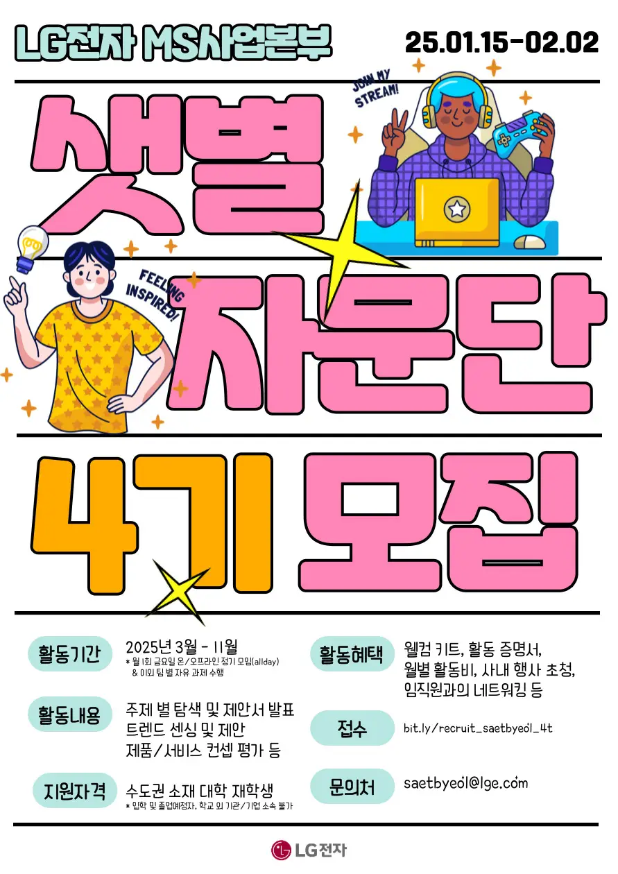LG전자 MS사업본부에서 샛별자문단 4기를 모집합니다.
