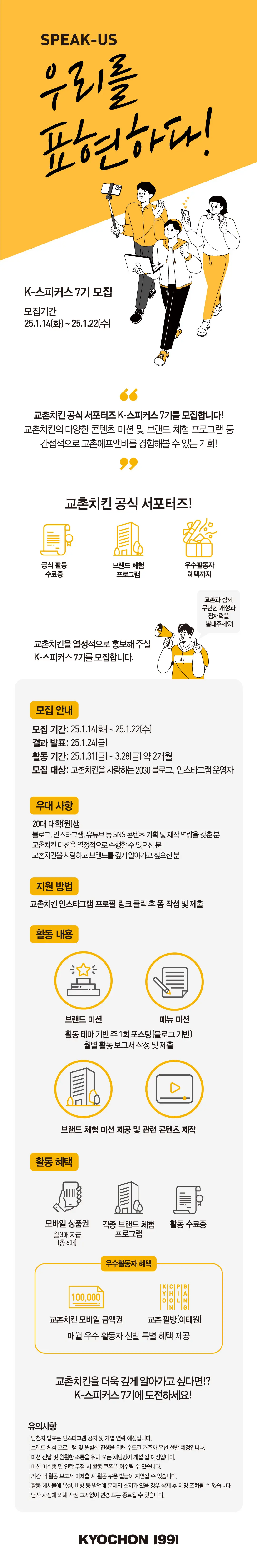 교촌치킨 서포터즈 K-스피커스 7기 모집