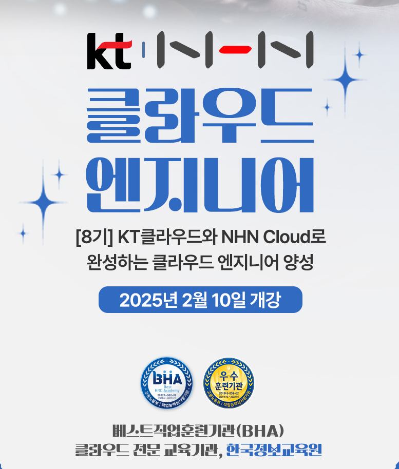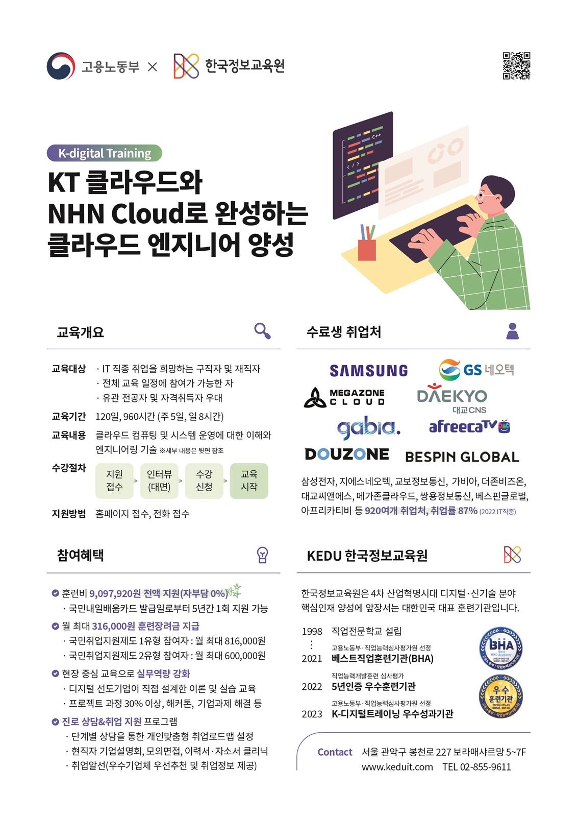 KT클라우드 NHN클라우드를 활용 국비지원 교육과정 교육생모집 공고입니다.