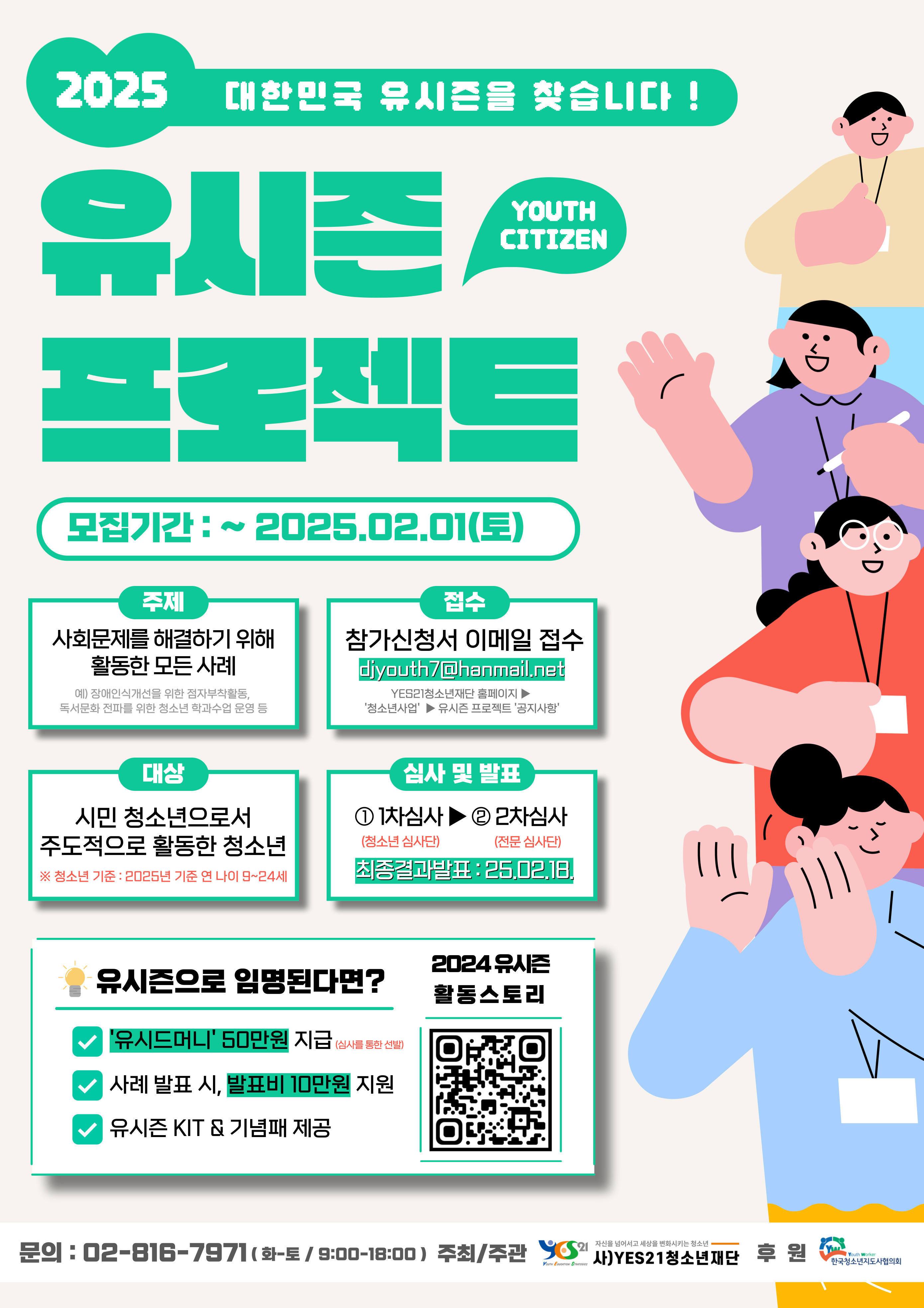 ✅모집대상 : 시민 청소년으로서 주도적으로 활동한 1인 청소년