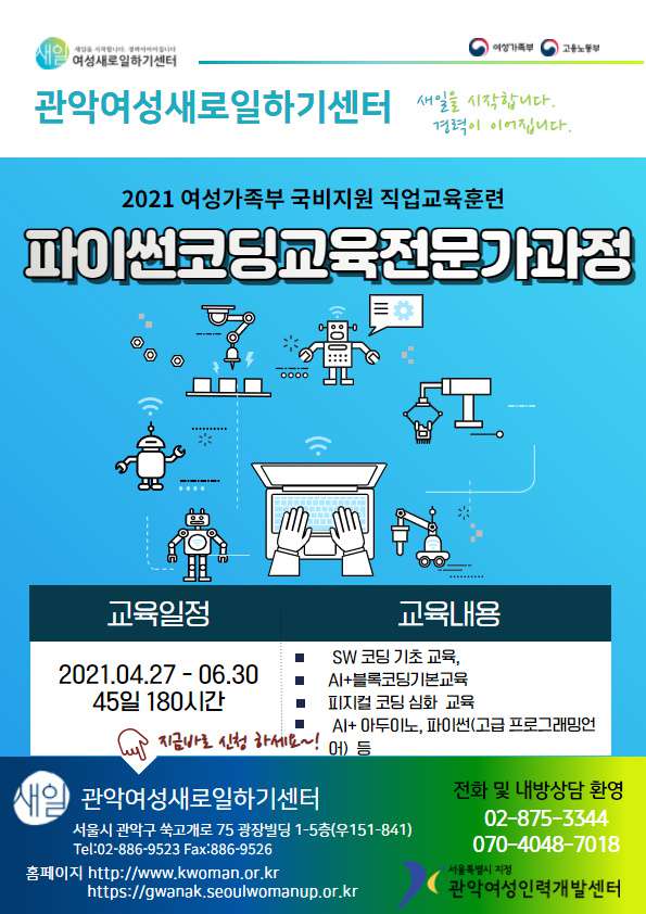 2021 여성가족부 국비지원 직업교육훈련 파이썬 코딩교육전문가 과정 훈련생 모집