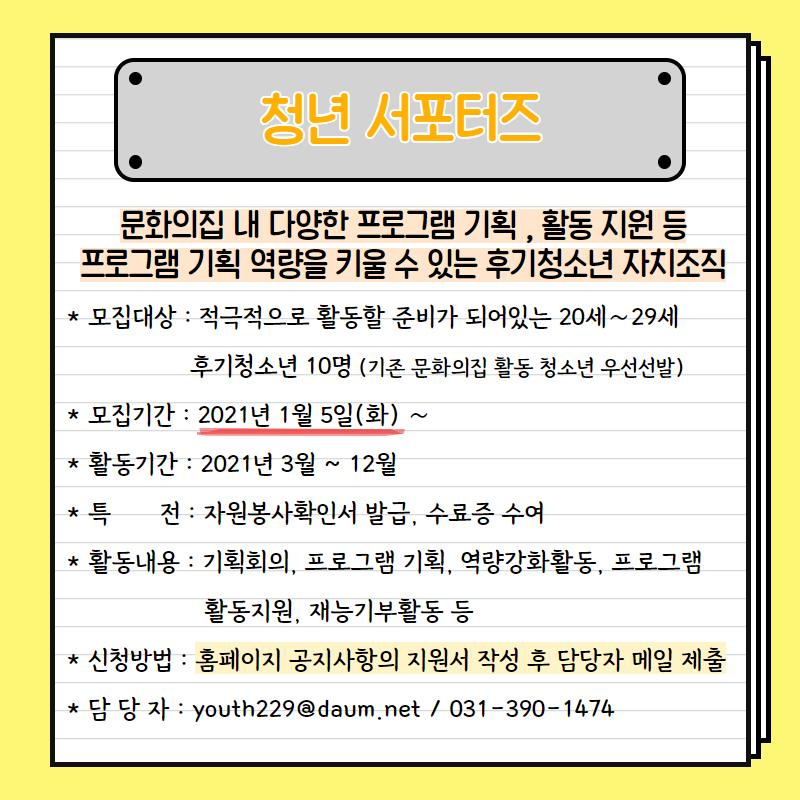 📢 당동청소년문화의집 청년 서포터즈를 모집합니다!!
