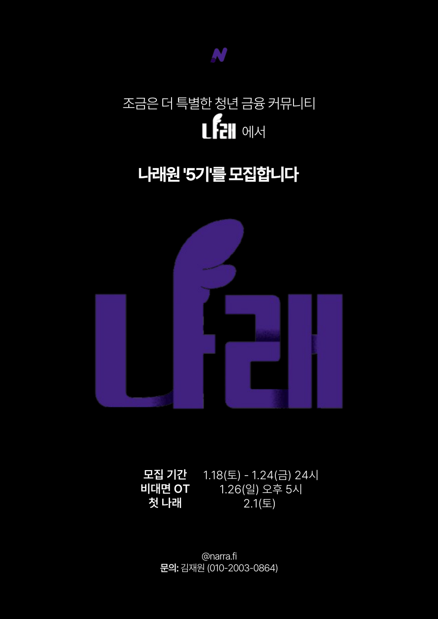 [나래]는 금융교육 스타트업 [NarraFi]에서 운영하는 금융 커뮤니티입니다.