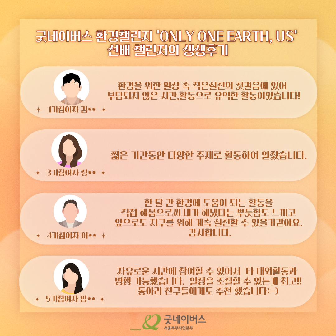 -온리원어스 챌린지는 굿네이버스 서울북부사업본부에서 주관하는 챌린지입니다. 개별적으로 굿네이버스 홈페이지를 통해 신청한 후원과 이미 진행 중인 후원은 인정되지 않습니다.