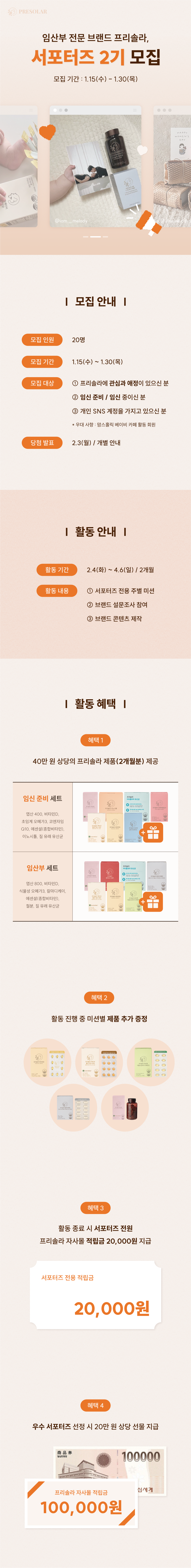 [임산부 전문 브랜드, 믿고 먹는 프리솔라] 공식 서포터즈 2기 모집