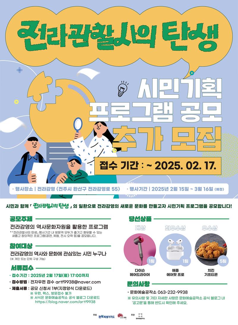 전라감영의 새로운 문화를 만들고자 시민기획 프로그램을 공모합니다~🤗