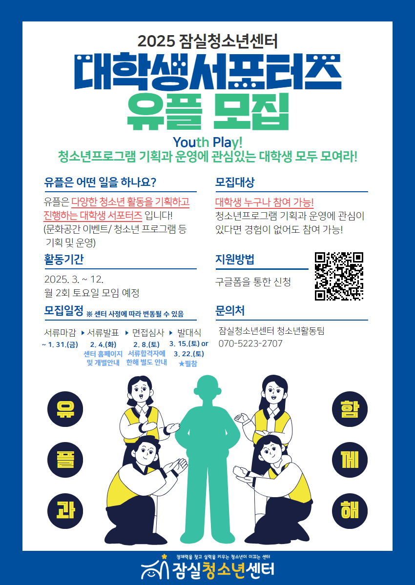 [2025년 잠실청소년센터 대학생 서포터즈 '유플' 단원 모집]