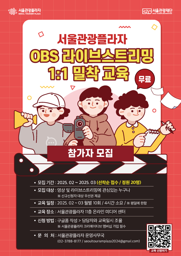 ⭐️서울관광플라자에서 OBS 라이브스트이밍 1:1 밀착교육 교육생 모집합니다!⭐️