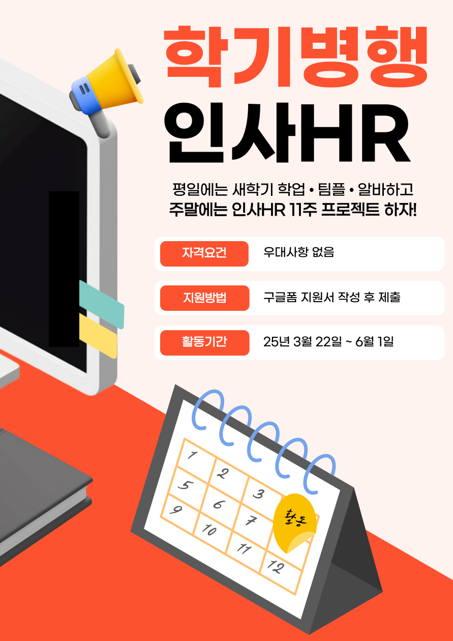 또래 대학생들과 함께 실무를 경험하고, HR 전문가의 강의를 통해 인사 분야의 매력을 느끼실거라 확신합니다!