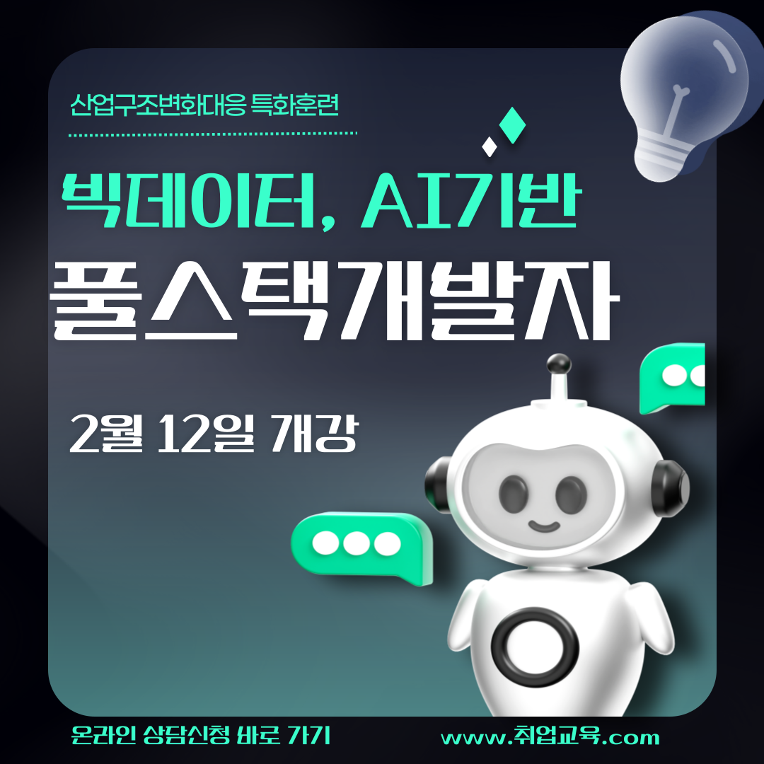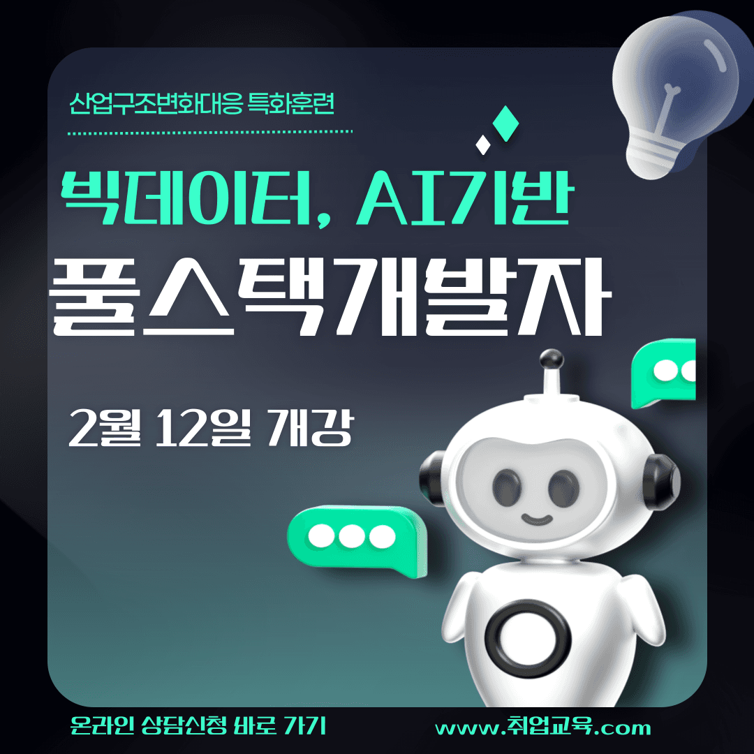 [특별훈련수당 추가제공] 빅데이터, AI 풀스택 개발자 취업 맞춤 실무교육