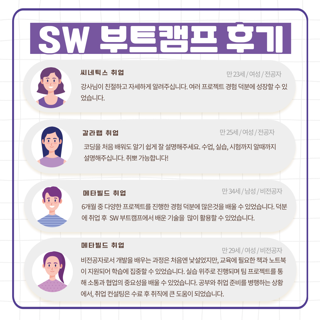 ★비전공자도 교육 수료 후 SW 개발자 또는 기획자가 되어 SW기업에 바로 취업할 수 있습니다.