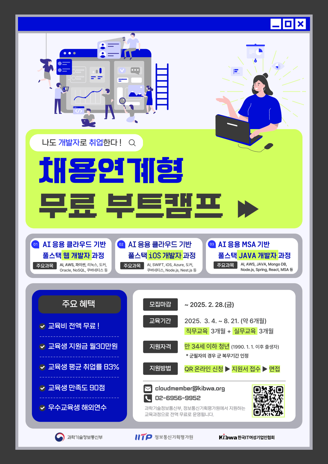 ☎ 교육 문의: 담당자 사무국(02-6956-9952, 02-6956-9518, 02-6956-9504 / cloudmember@kibwa.org)