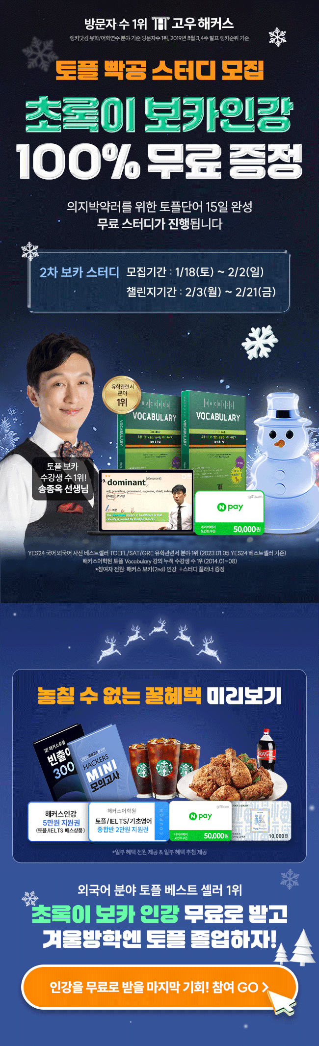 *스터디 미션 성공 시 각 주차별 해커스 보카(2nd) 인강이 추가 제공됩니다.