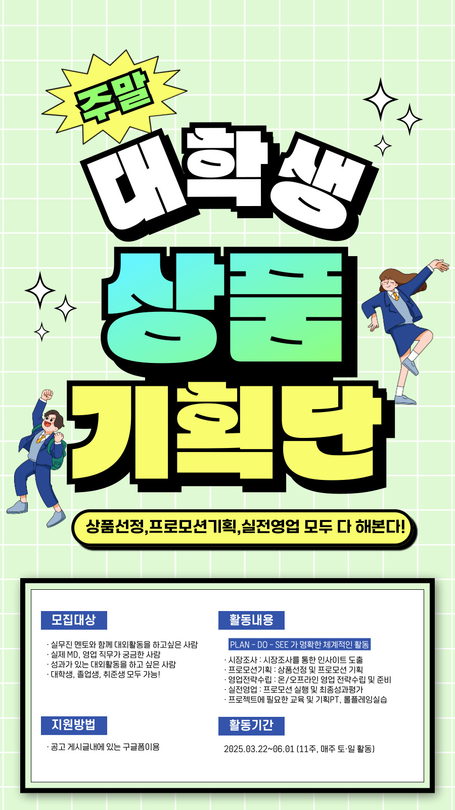 ✔️상품선정->프로모션기획->실전영업->성과리뷰까지 모두 가능한 활동