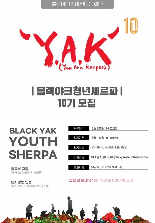 - 2025년 블랙야크청년셰르파 You. Are. Keepers 10기 모집
