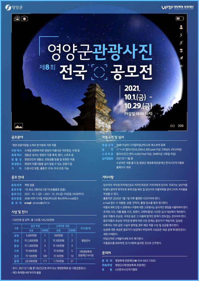 - 2020년 1월부터 2021년 10월까지 촬영된 영양군의 관광자원을 소재로 한 미발표 자유작품