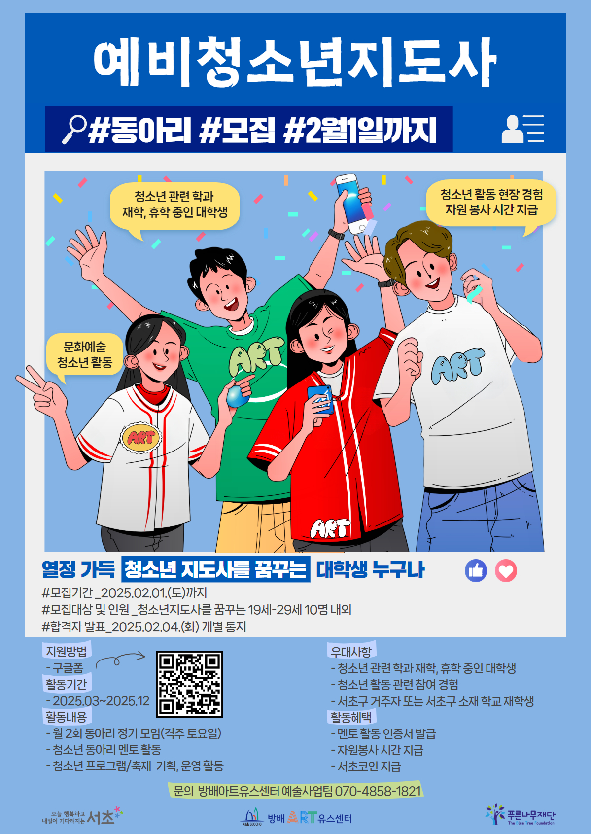 방배아트유스센터에서 2025년 예비청소년지도사 동아리를 모집합니다!!