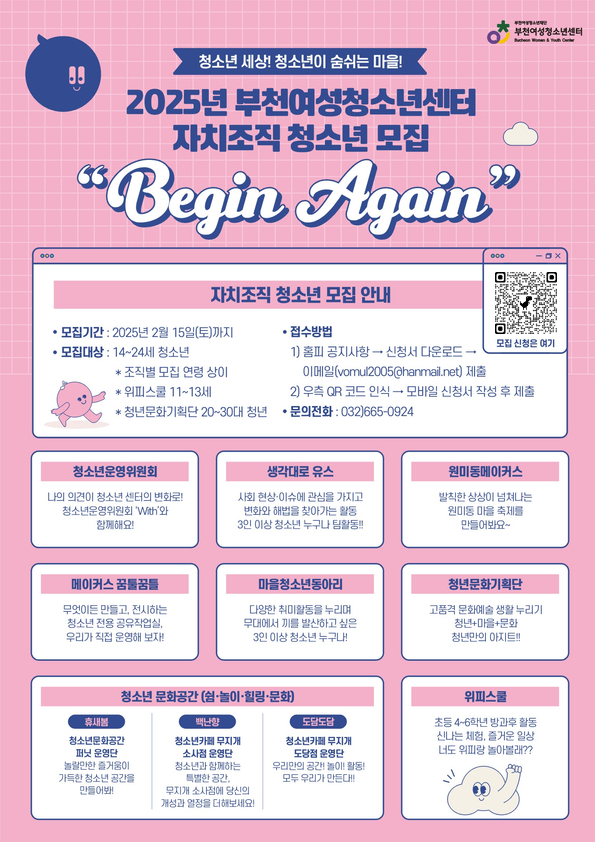 2025년, 부천여성청소년센터(경기 부천시 원미구)에서 함께 특별한 추억과 성장을 기록할 청소년·청년을 찾습니다!