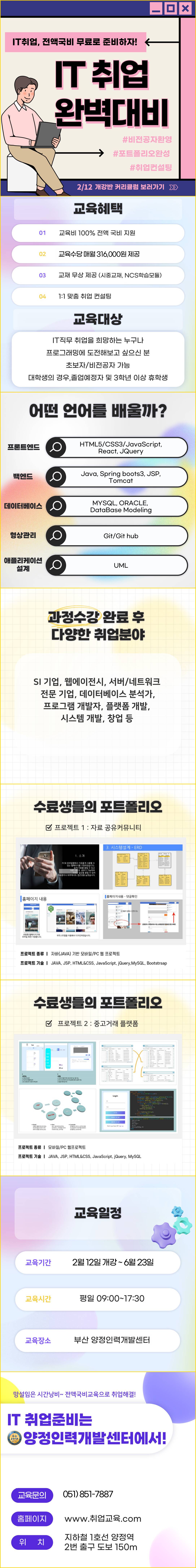 ✔️교육장소 : 고용노동부 지정 우수훈련기관 양정인력개발센터