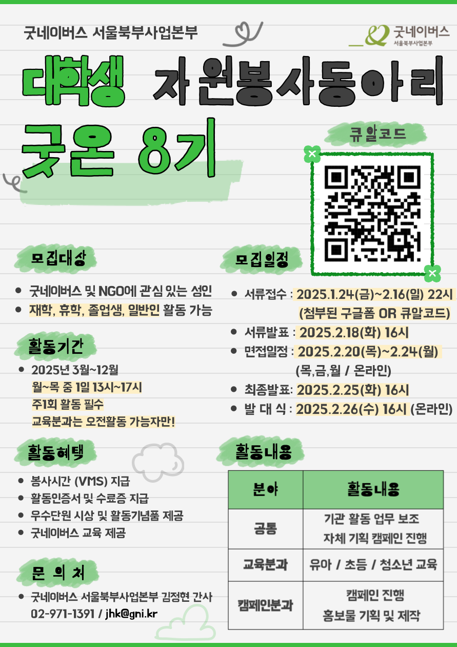 [굿네이버스 서울북부사업본부] 대학생자원봉사동아리 '굿온' 8기 모집