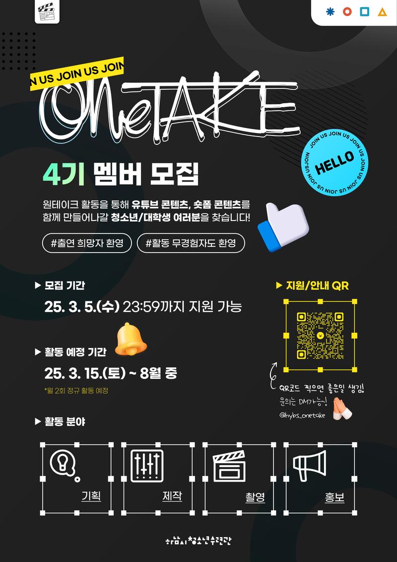 *원 테이크는 정규 콘텐츠를 제작하는 활동입니다. 월 2회 (토요일) 활동을 운영하고 있습니다.
