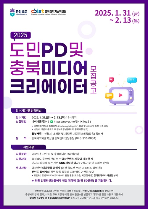 - 지원분야: 2025년 도민PD 및 충북미디어크리에이터