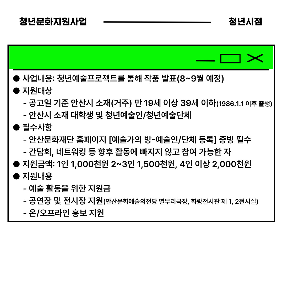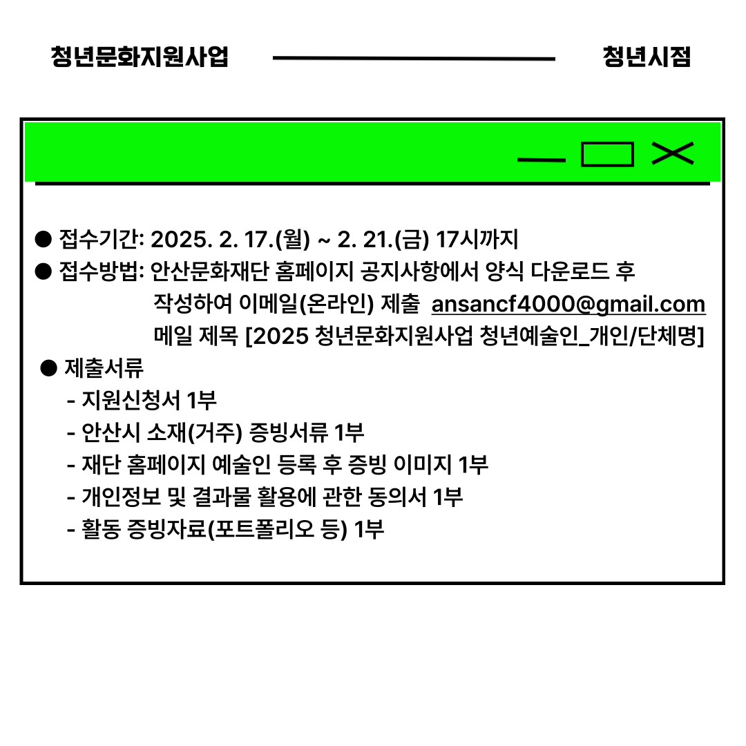 ※ 자세한 내용은 안산문화재단 홈페이지 참고