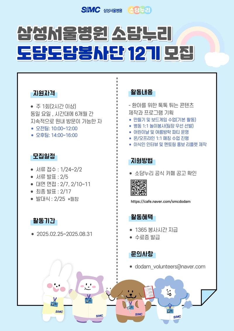 2025년 상반기에 함께 하실 도담도담봉사단 12기 단원을 모집합니다!