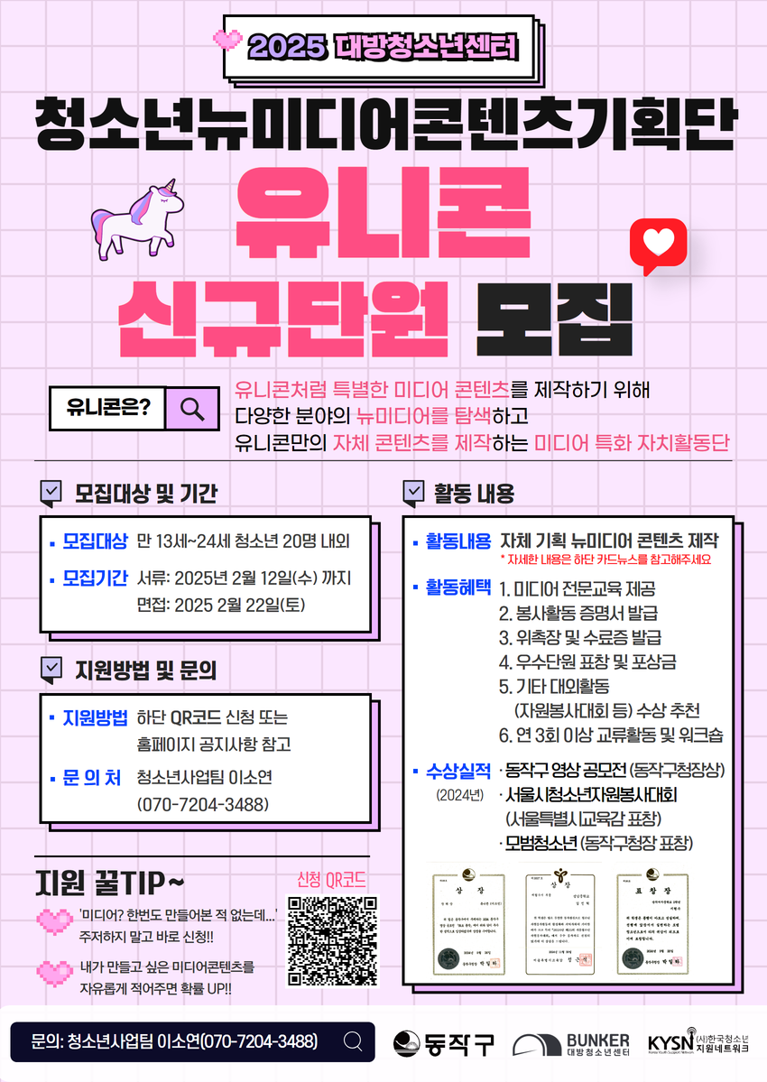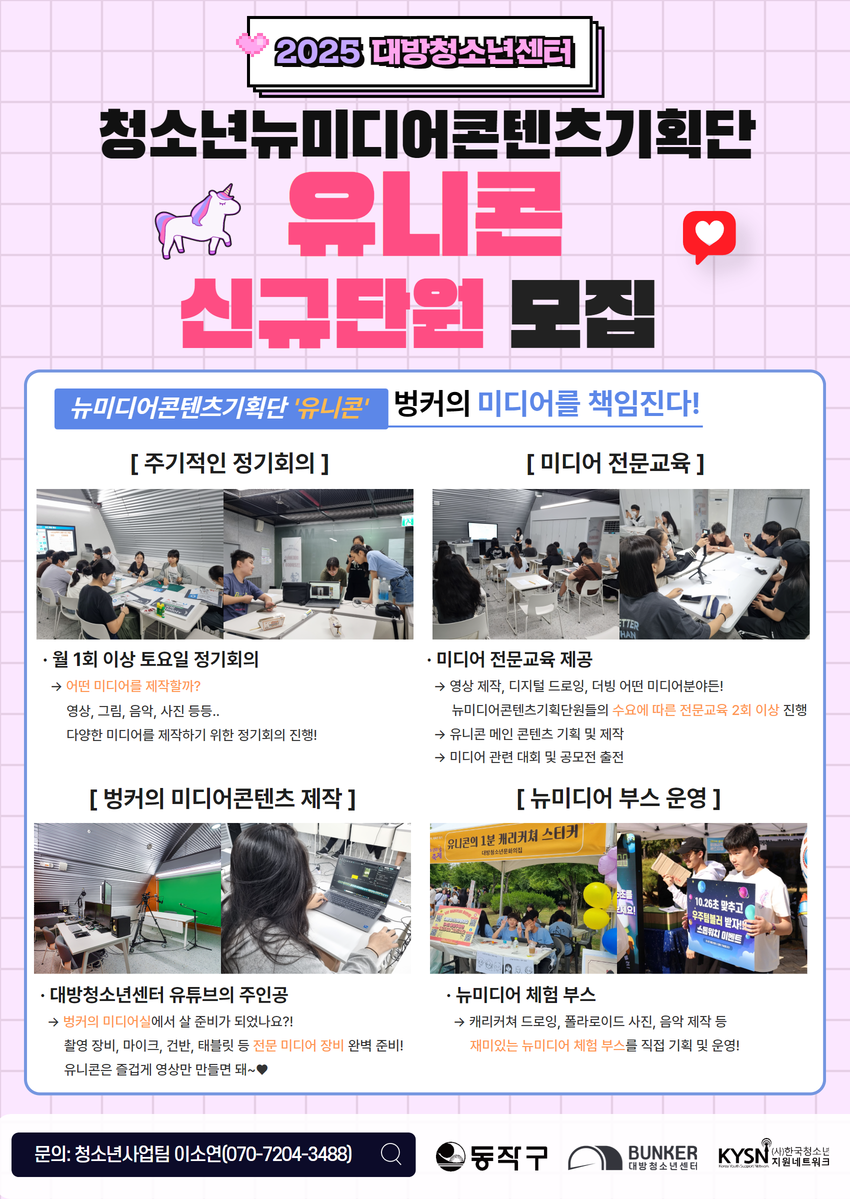 [2025년 청소년뉴미디어콘텐츠기획단 '유니콘' 신규단원 모집]