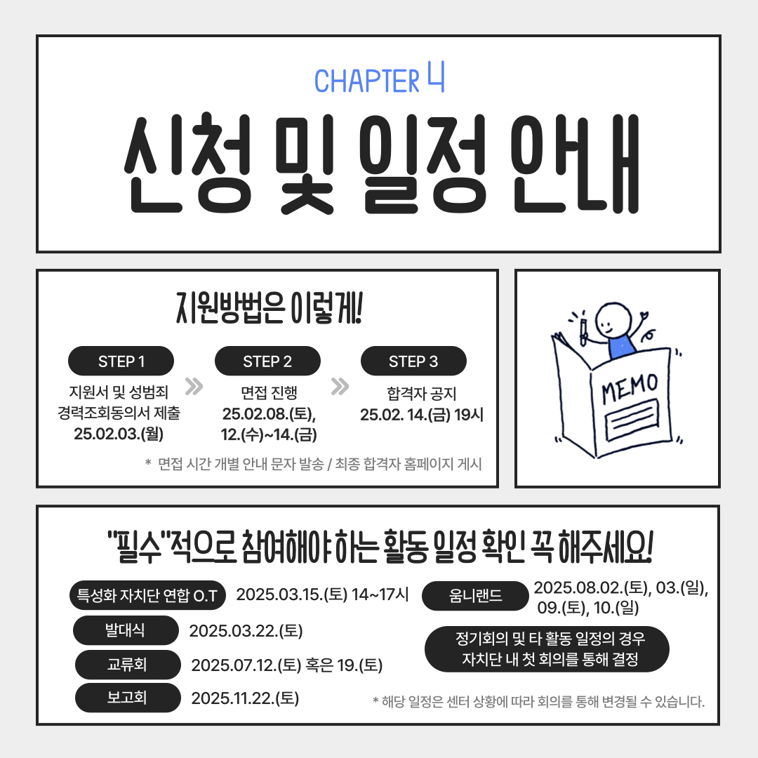 - 최종 합격자 발표 : 2025년 2월 14일 (금) (19시 홈페이지 공지 예정)