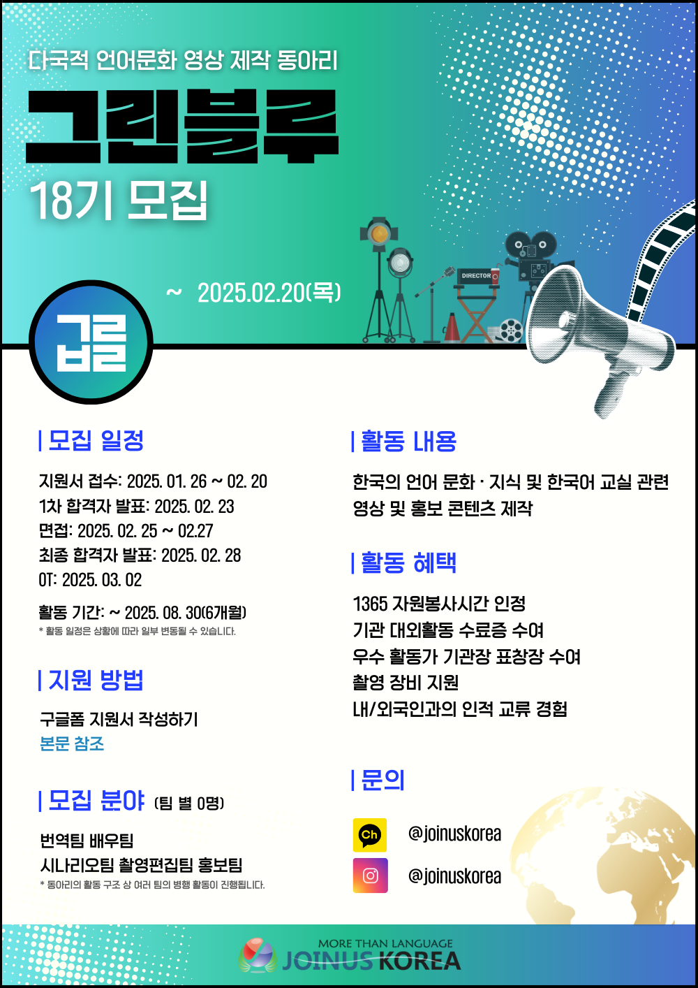 📞문의: 카카오톡 오픈 채널 · 인스타그램 채널 @joinuskorea