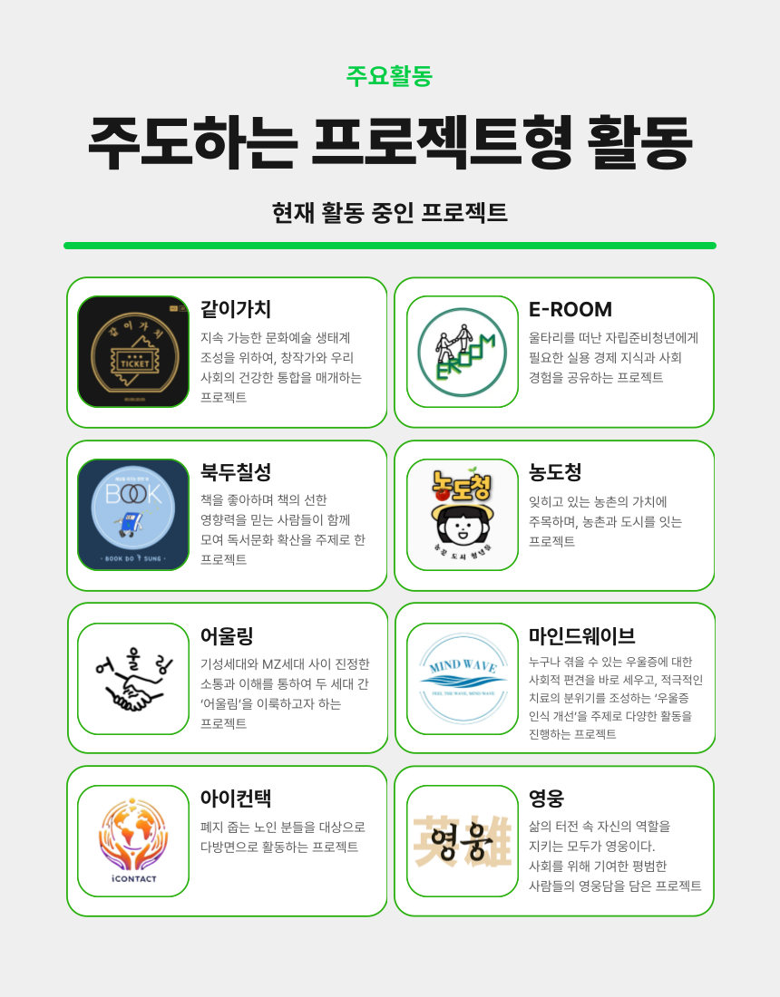 청년이 중심이 되어 직접 사회공헌 캠페인을 기획과 제작, 실행하는 국내 최초 사회공헌조직입니다
