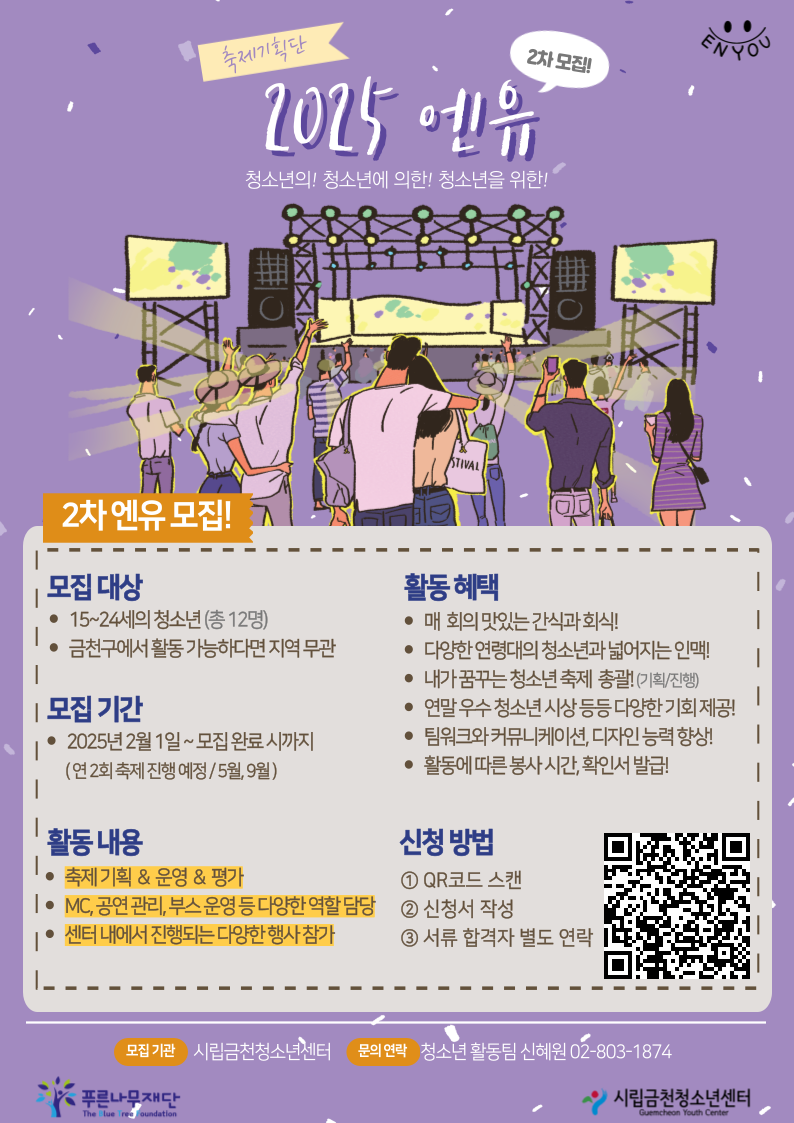 2025년 시립금천청소년센터에서 청소년 축제기획단 [엔유] 단원을 추가모집하고 있습니다~☀️