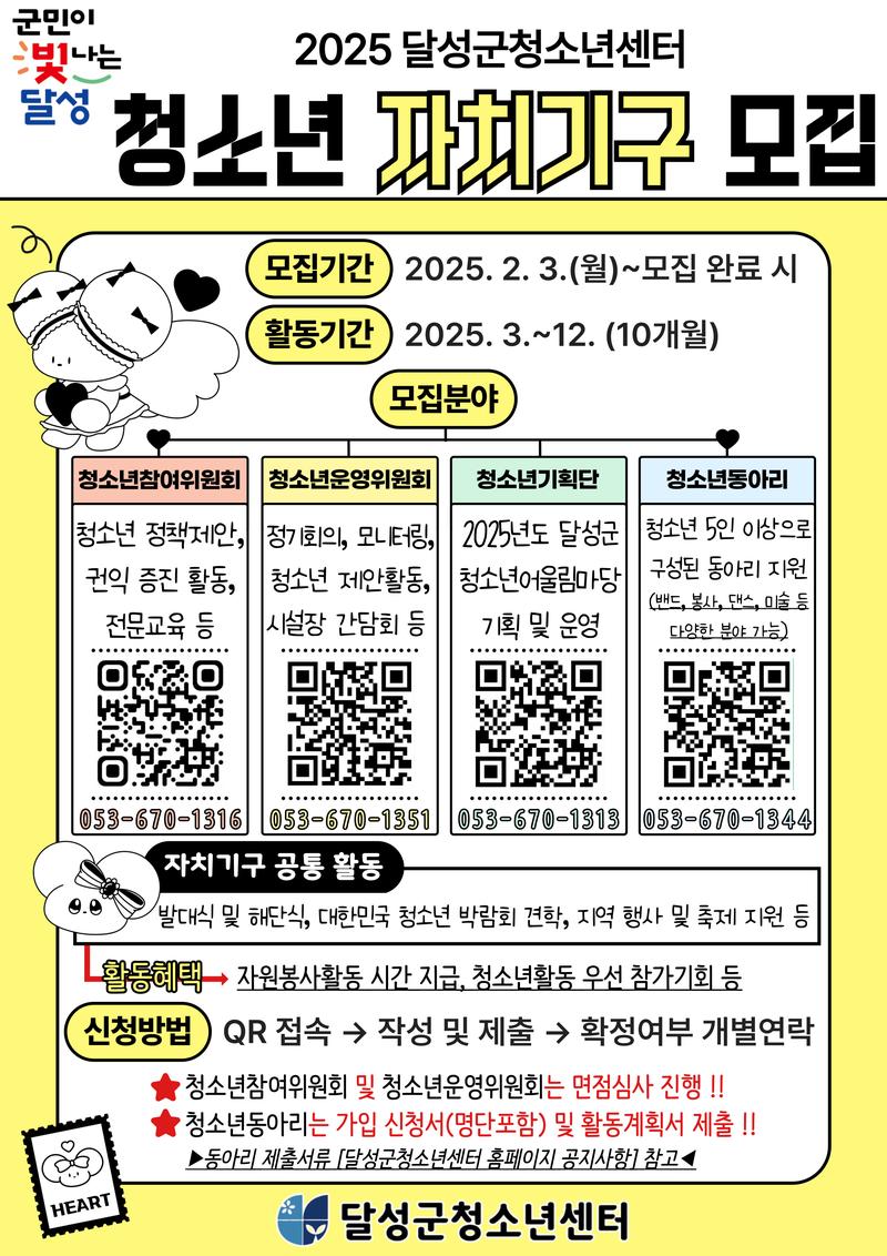 ★2025 달성군청소년센터 청소년자치기구 大모집!!★