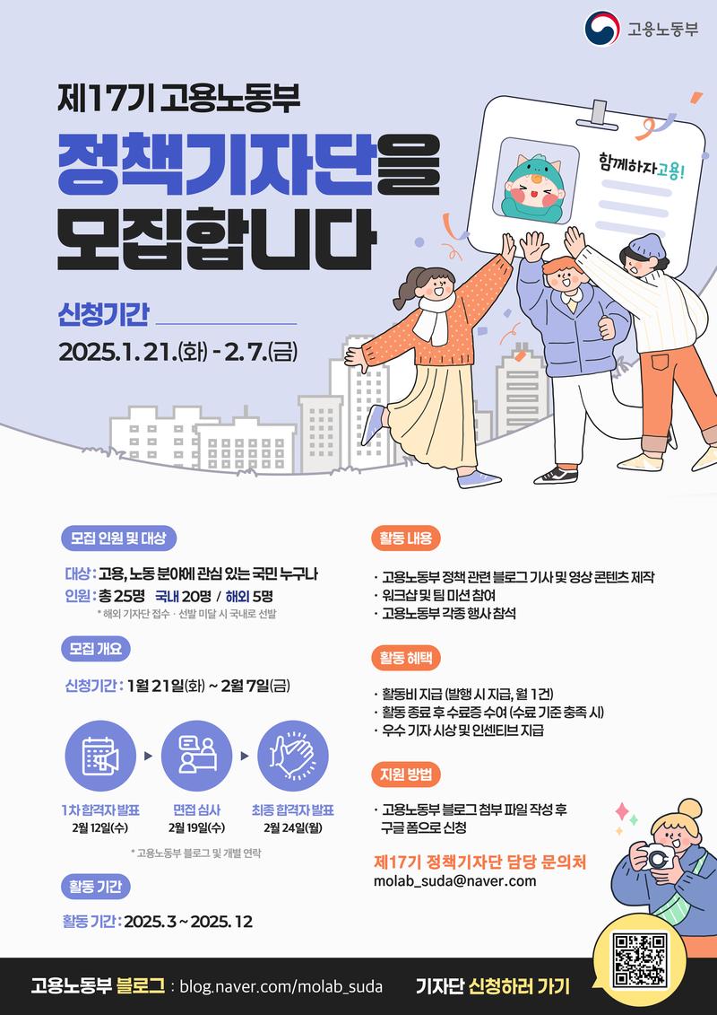고용노동부 2025년 제17기 정책기자단에 지원해주셔서 감사합니다.