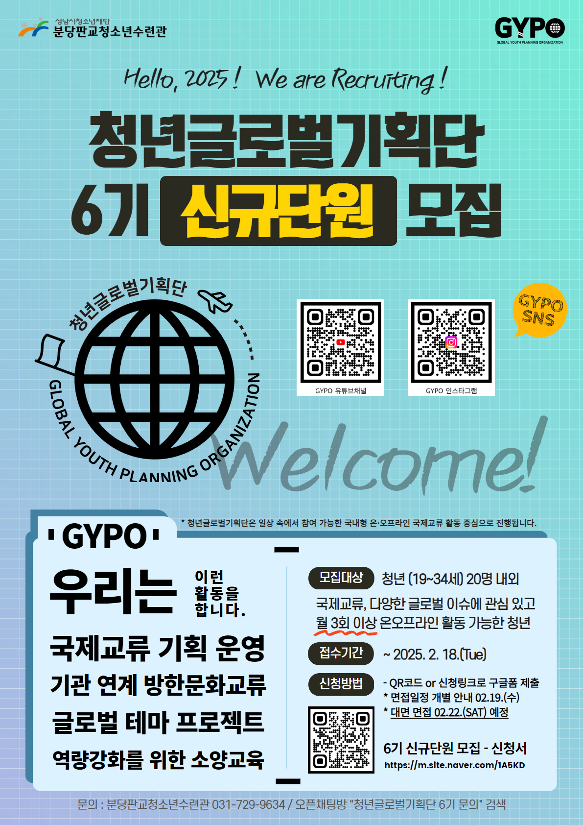 2025년 청년글로벌기획단 『청옥』 6기 모집