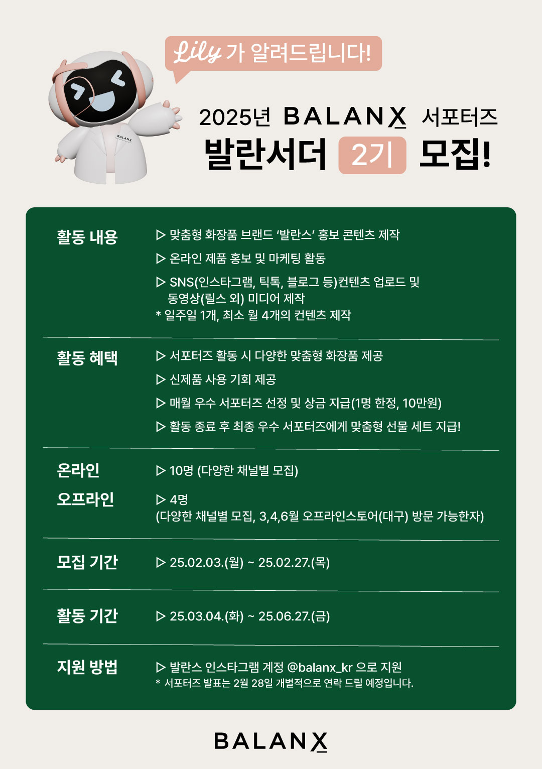 맞춤형 화장품 브랜드 #BALANX 와 함께 할 #서포터즈 를 찾습니다!🎁