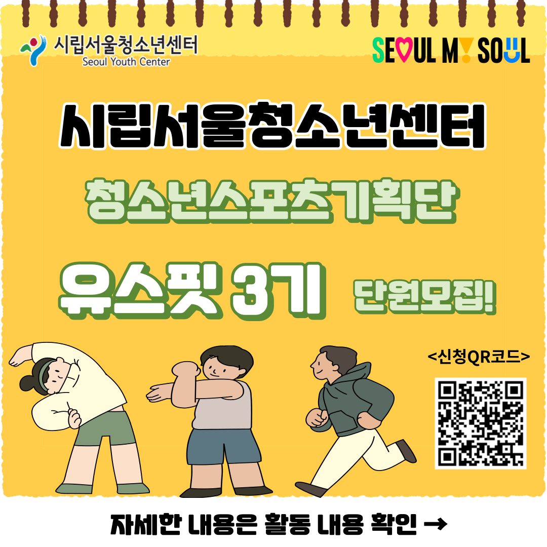 시립서울청소년센터에서 2025년 청소년청소년스포츠기획단 유스핏 3기 단원을 모집합니다!