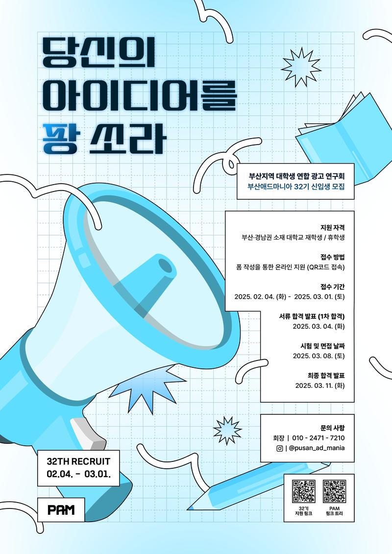 💡부산 대학생 연합 광고 연구회 부산애드마니아(PAM) 32기 모집💡