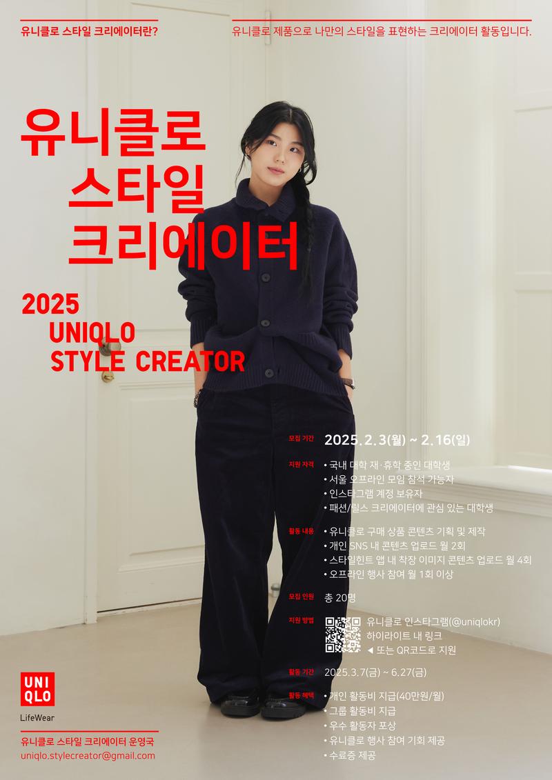 문의 사항 : 유니클로 스타일 크리에이터 운영국 uniqlo.stylecreator@gmail.com (평일 10:00-18:00)