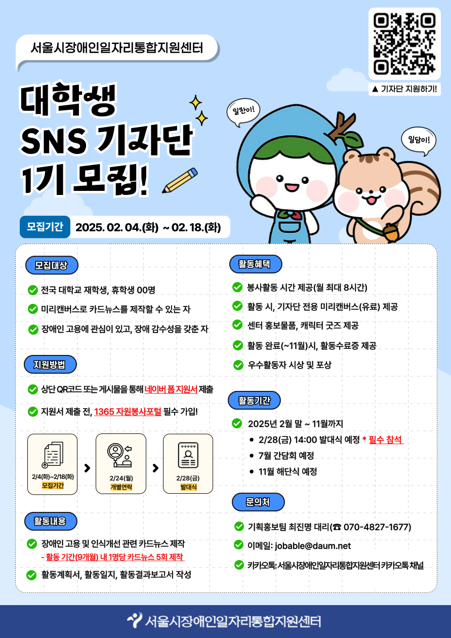 서울시장애인일자리통합지원센터에서 대학생 SNS 기자단 1기를 모집합니다!