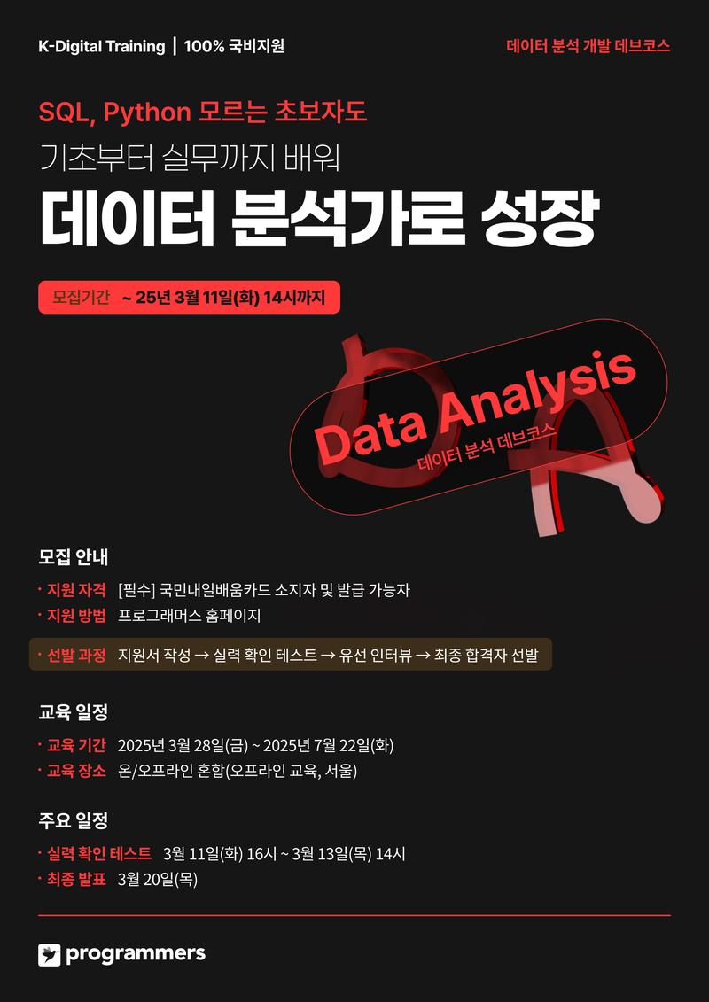 ✨ SQL, Python 모르는 비전공자도 주니어 레벨로 성장 가능한 데이터 분석 부트캠프