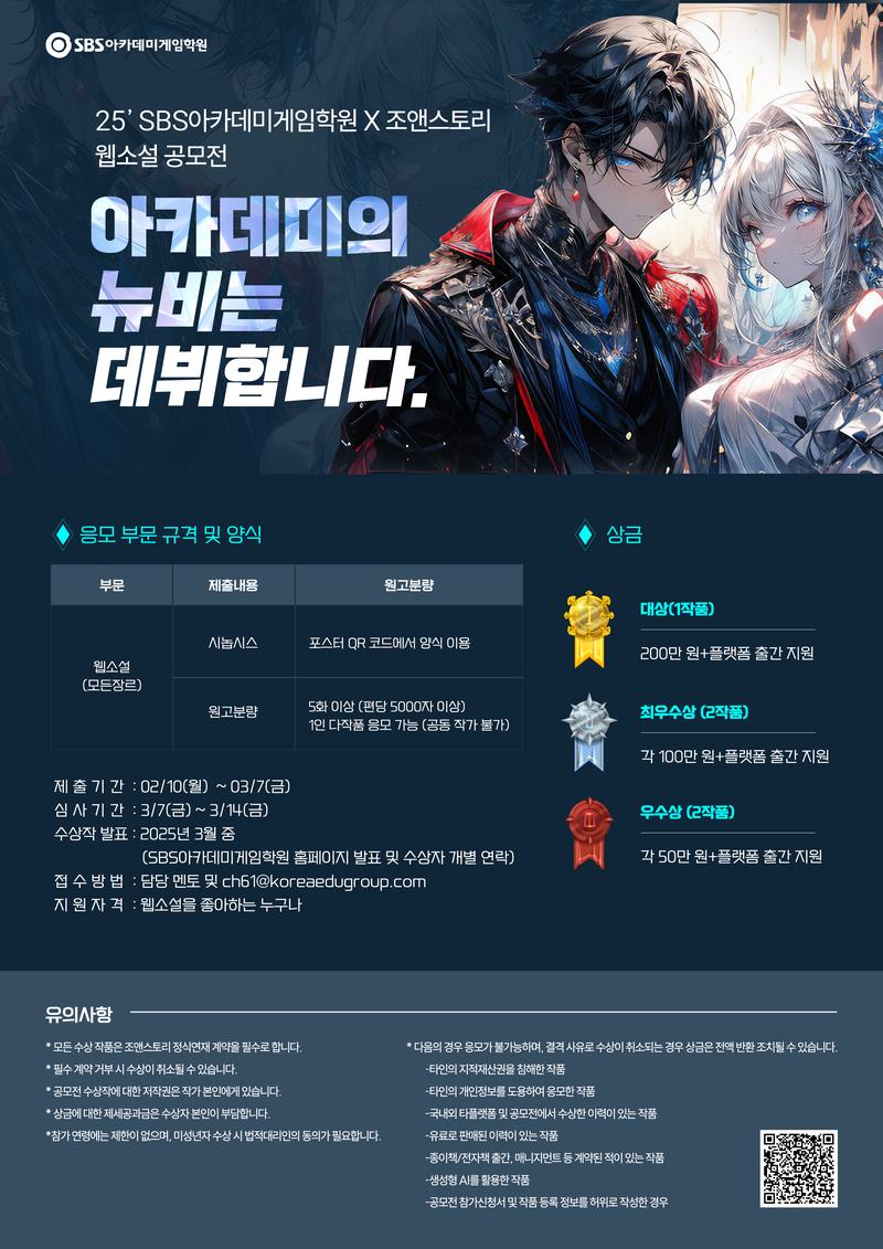 2025 SBS아카데미게임학원 X 조앤스토리 웹소설 공모전 - 아카데미 뉴비는 데뷔합니다