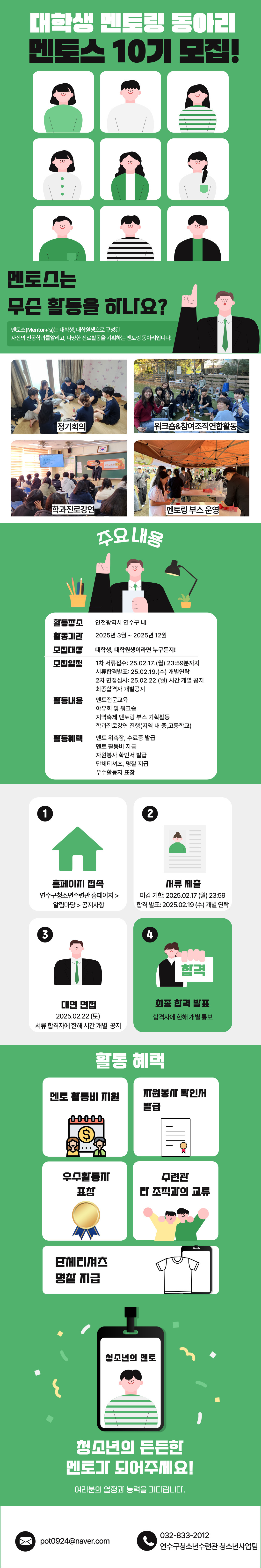 지원방법: 연수구청소년수련관 홈페이지 공지사항 참조