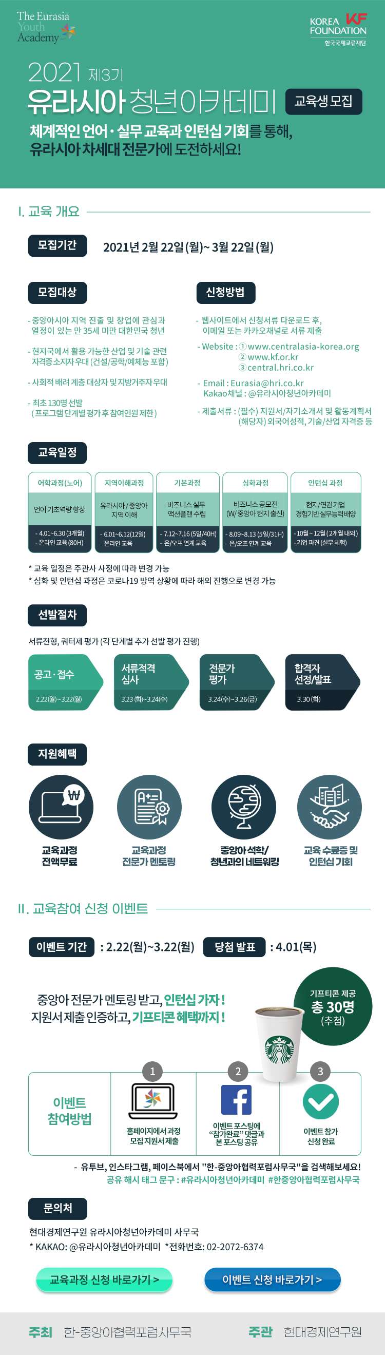 문의처(전화: 02-2072-6374/ 카카오톡 채널: @유라시아청년아카데미)